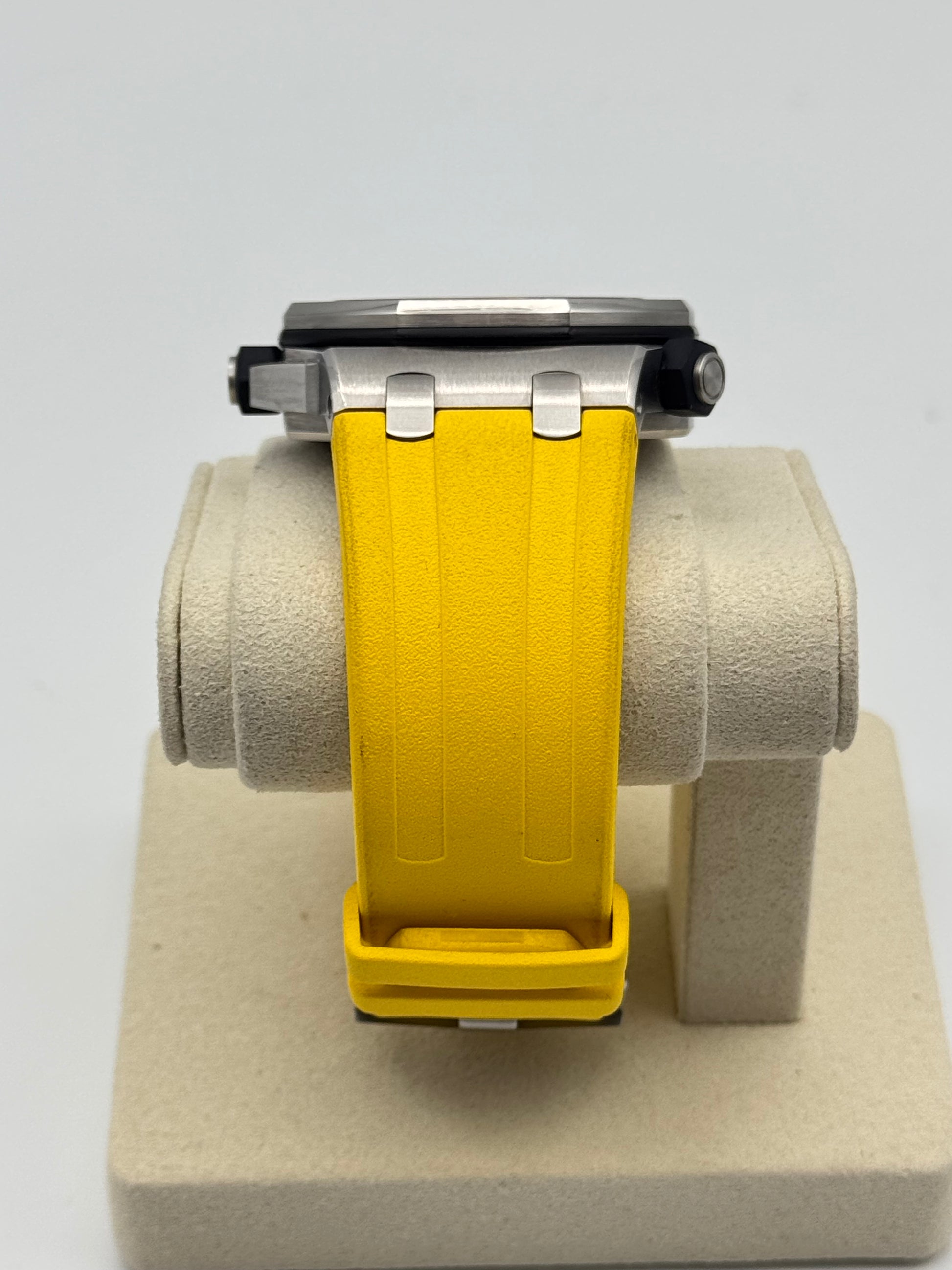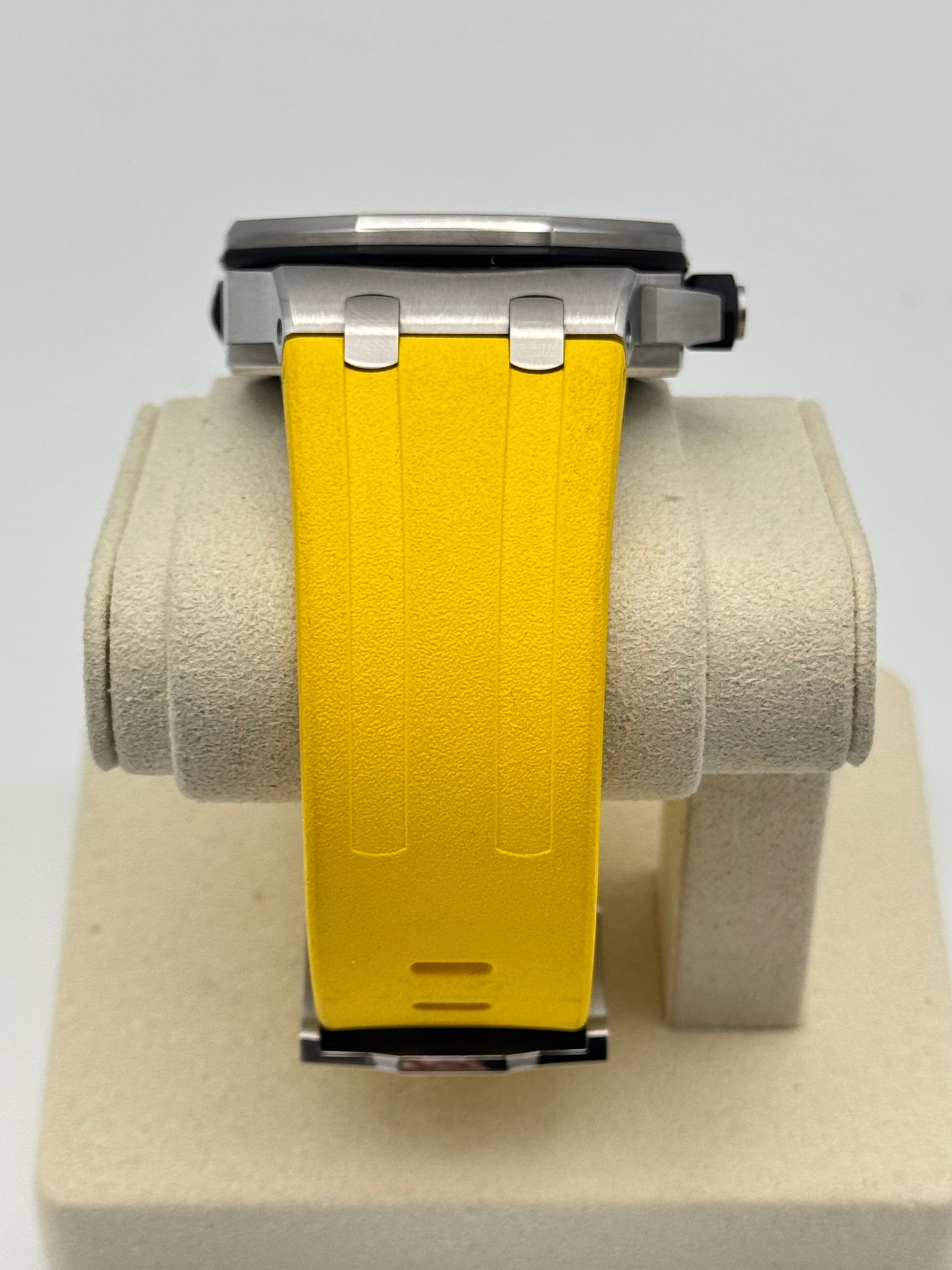 Condition: Used, good condition with minor signs of wear on the case and slightly more signs of wear on the bezel. The yellow strap and the clasp are also in good condition.