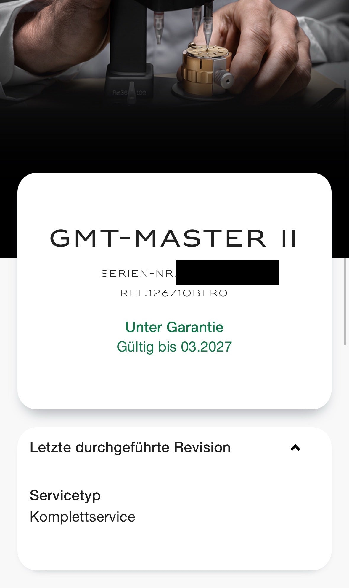- Rolex guarantee card (Rolex manufacturer's warranty until March 2027)